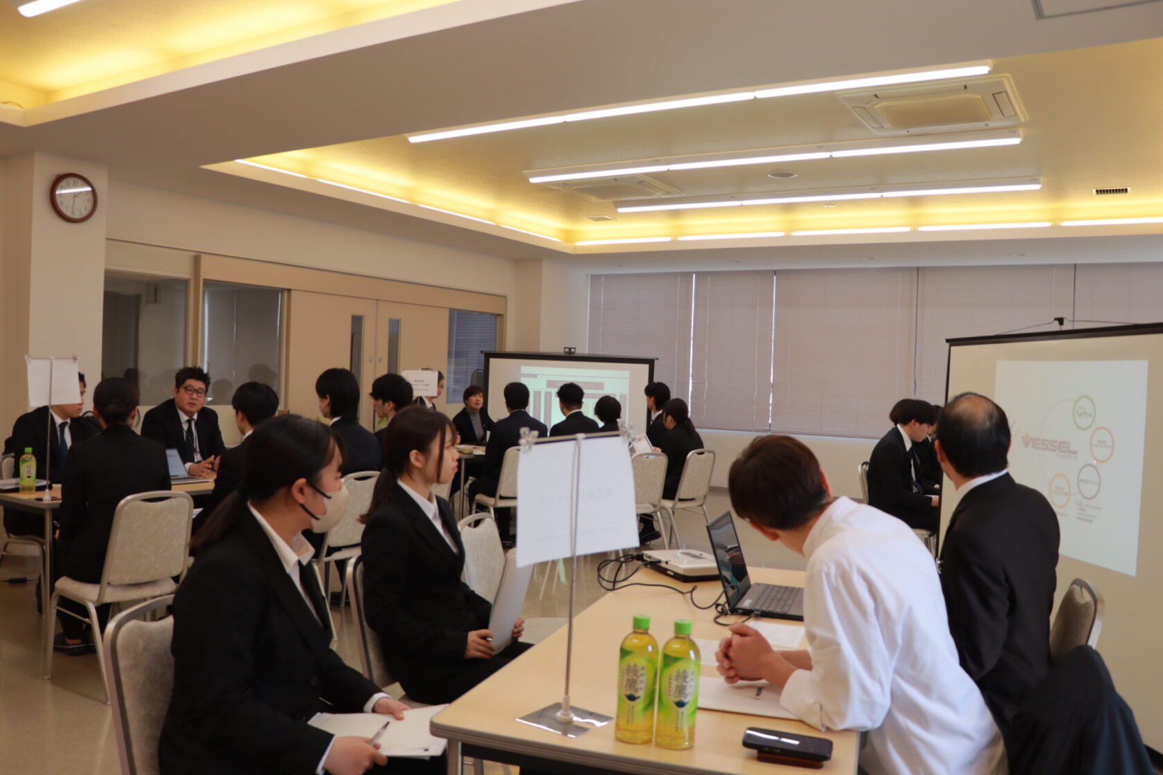 学生たちは事前に希望を出していた企業の説明会に参加し、具体的な仕事内容や企業ごとの特色、仕事のやりがい、勤務条件や給与体系など、就職を考えるうえで気になる点について説明を受けました。実際の現場で働く担当者から直接話を聞くことで、資料だけでは分からない職場の雰囲気や考え方に触れる時間となりました。