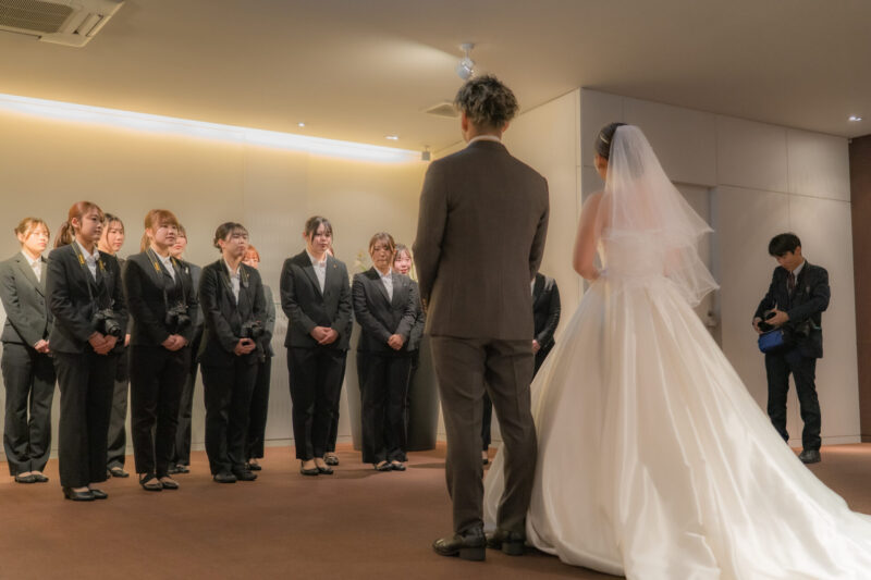 ブライダル・ホテル学科では、「プレシャスウェディング」をはじめとする本物の現場を通じ、在学中から「心(ホスピタリティ)」と「スキル」の両方を磨くことができます。卒業生の幸せを後輩が形にするような、温かい絆があるのもこの学校の自慢です。