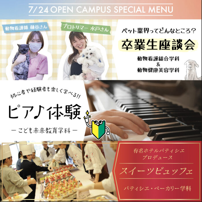 【動物・保育・パティシエに興味のある方へ】7/24(日)オーキャンピックアップ企画!