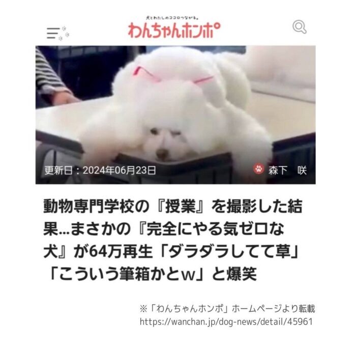 スタッフ犬たち🐶が犬専門の情報メディア「わんちゃんホンポ」で紹介されました(動物系看護総合学科・動物健康美容学科)