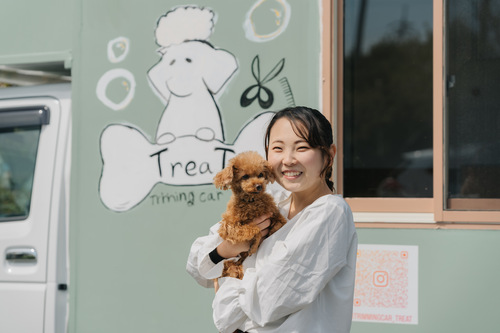 【活躍する卒業生】トリミングカーで登場!トリミングサロン「treat」オーナー中村さん(動物健康美容学科)