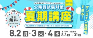 ★締切延長★【公務員を目指す人へ】8/2~8/4「夏期講座2021」開催!オンラインもあり(公務員系学科)
