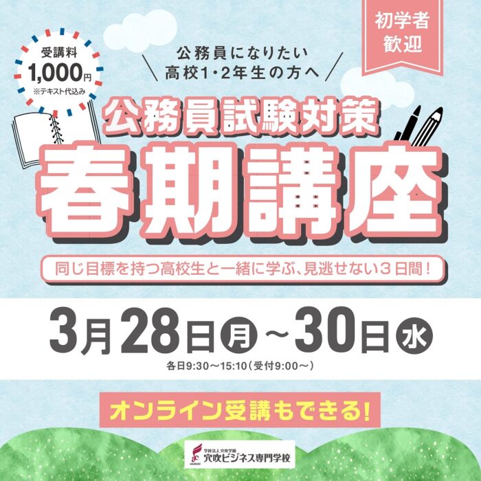 【公務員を目指したい方へ】春休みに「春期講座2022」開催します(公務員系学科)