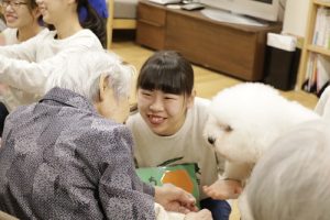 デイサービスセンター「とおり町きなこ」さんでアニマルセラピーを実施しました(動物看護総合学科)