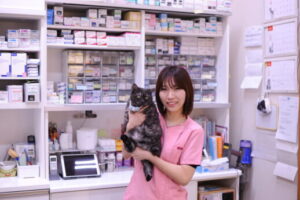 現在は看護業務や手術補助の仕事が中心ですが、その他にも受付やトリミングのサポートなどもしています。