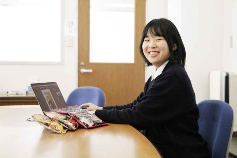 そして色々なことを経験していく中で、「お菓子のパッケージを作ってみたい」と考えるようになり、その夢を叶えられる仕事に就くことができました。自分が作ったパッケージのお菓子が店頭で販売された時、売れた時はとても嬉しく、やりがいを感じています。努力は必要ですが、夢や目標があるなら絶対持ち続けて、進んでみてほしいです。