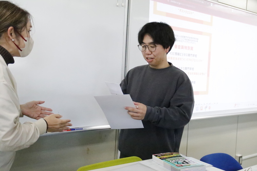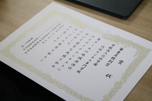 教室で賞状と副賞を授与され、クラスメイトにも祝福されました!