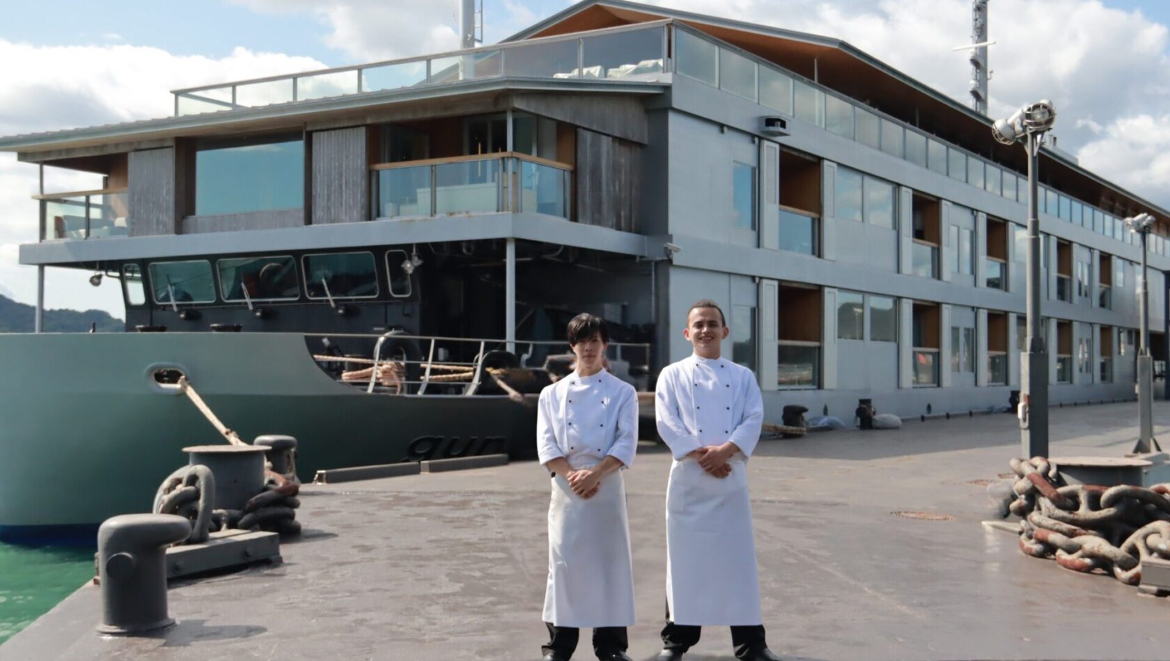 瀬戸内海をゆったりと巡る客船「ガンツウ(guntû)」。船内で腕を振るうのは、なんと穴吹調理製菓専門学校の卒業生、森 健琉さんとタクール小迫 利士(こさこ りし)さんのお二人です!