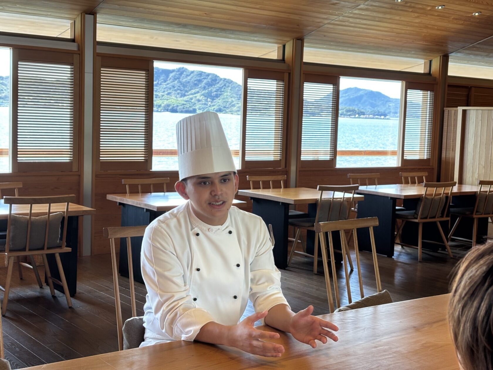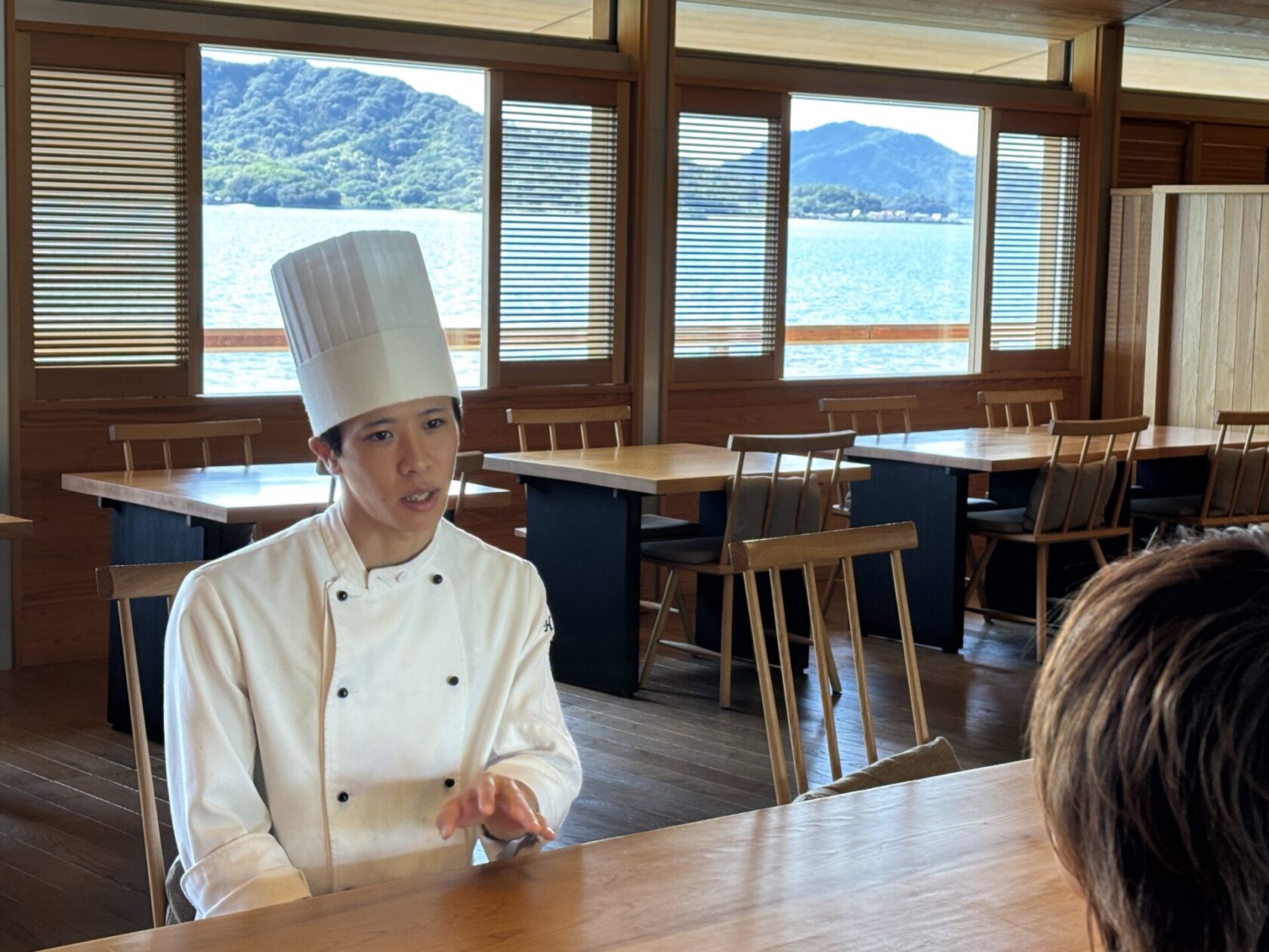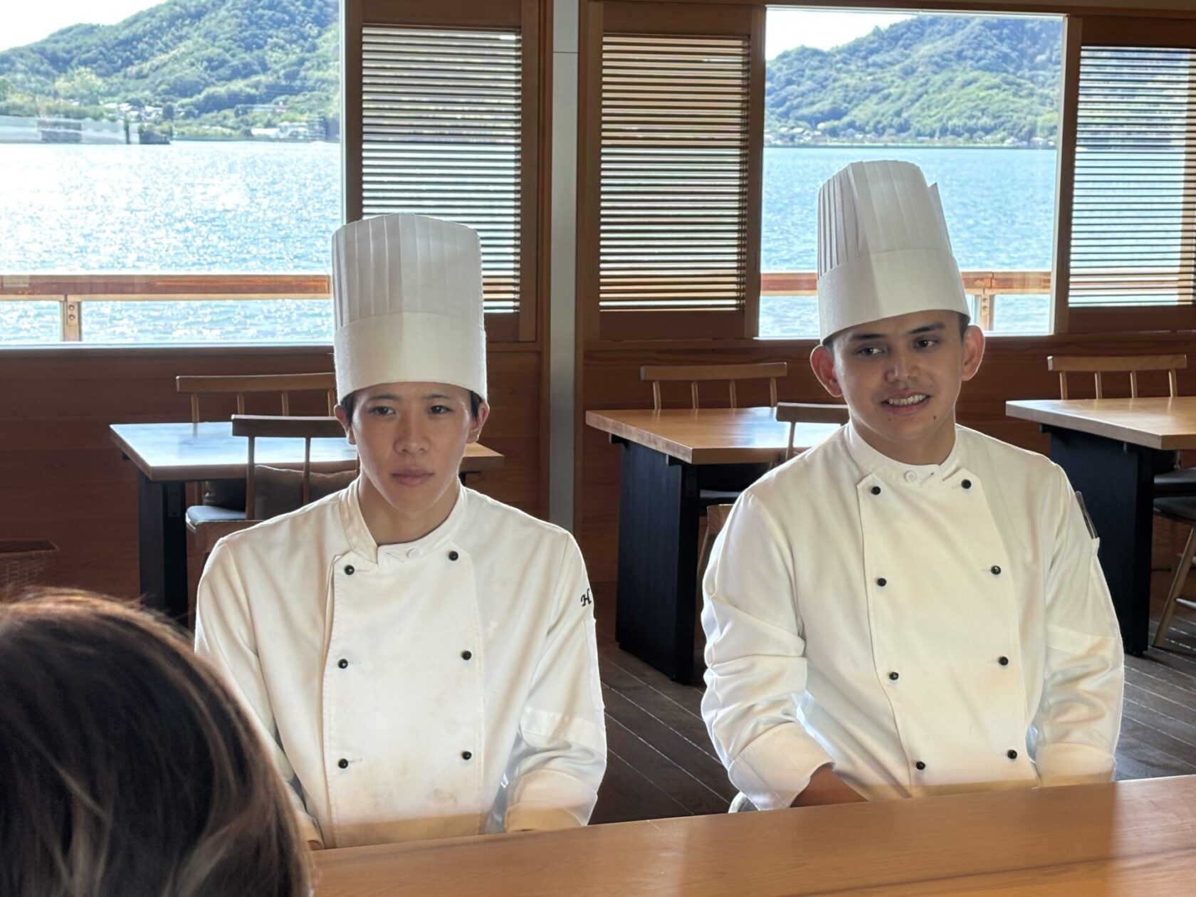 お二人の話を聞いて、改めて「ガンツウ」という特別な環境で、プロとして大きく成長している姿を見ることができ、嬉しく思いました。特に、船上での作業への工夫や、「後輩からも先輩からも慕われる料理人」を目標に技術を磨く姿勢は、料理の世界をめざす皆さんにとって大きな刺激になるはずです。これからも瀬戸内の海で、お客様に最高の「食」の体験を届けてくれることを応援しています!