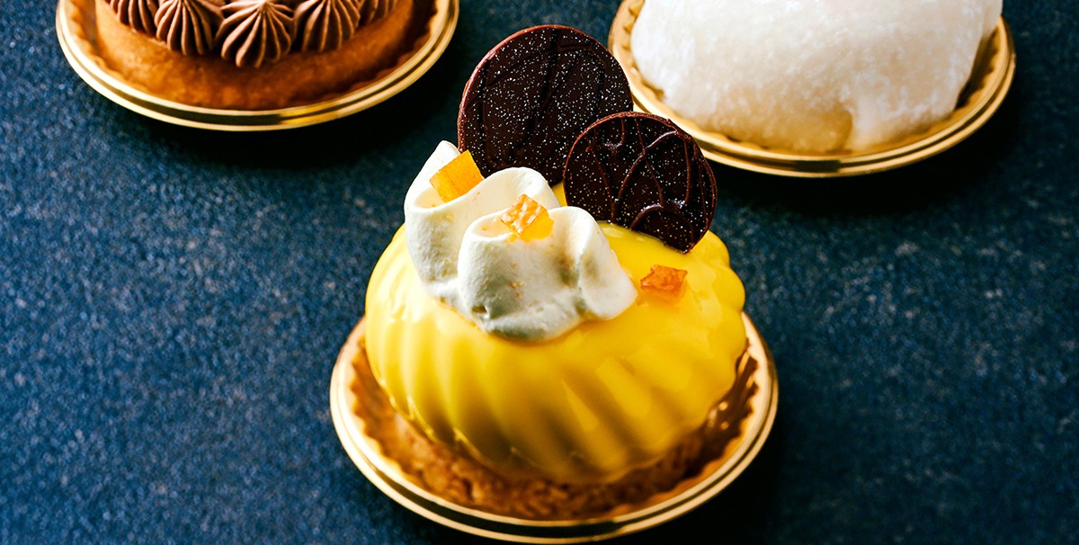 「自分の食べたいものや、旬の食材からアイデアを膨らませて考える」というケーキ作りは、まさにクリエイティブな挑戦。冬のケーキとして試作を重ね完成したケーキ。11月からホテルオークラ京都 1階レックコートにて提供されます。