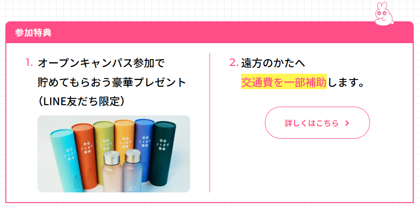 多くの専門学校が、オープンキャンパスへの参加者に向けて交通費補助や参加特典を用意しています。遠方から足を運ぶ人にとっては、コスト面の負担が軽減されるので、ぜひ事前に公式サイトや問い合わせ窓口で確認しておきましょう。