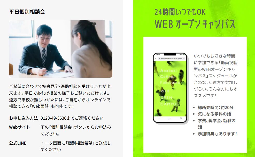 アナブキのオープンキャンパスに参加して学校の雰囲気や学習内容など、疑問や不安を解消しましょう。