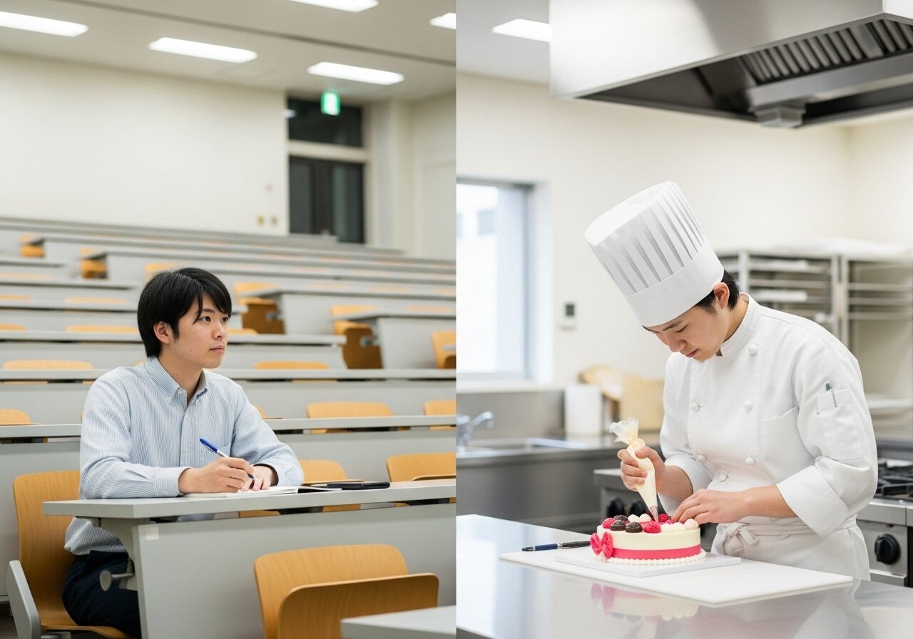 大学の場合、選択科目が多数用意されており、自分の興味や将来の進路に合わせて履修計画を立てやすいです。ただし、その分自己管理が必要であり、幅が広すぎて卒業後の進路が定まりにくいという面もあります。専門学校は職業教育に特化したカリキュラムがあらかじめ組まれており、実習や現場実習を通じて確実に技能を身に付けられるため、知識と実務を一体で学びたい人に向いています。